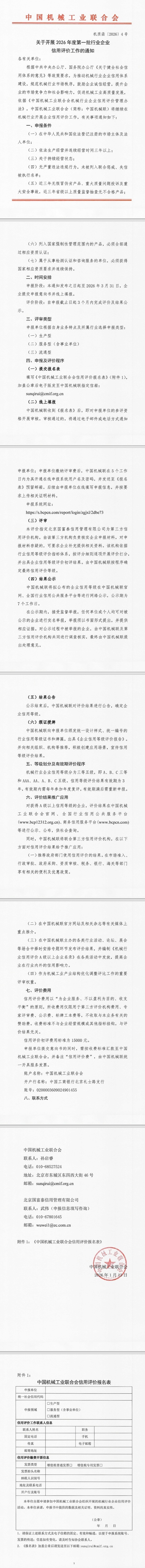 附件:中国机械工业联合会信用评价报名表